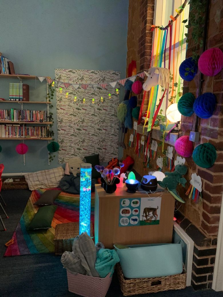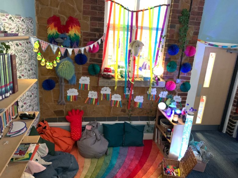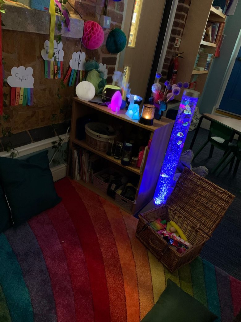 We are dedicated to raising awareness and supporting our children’s mental health; The Cosy Corner is a space where they can feel safe, and can talk. Children can talk one to one with an adult or in a group. We have sensory equipment such a mood lighting, an essential oil diffuser, a projector and pulse point calming oils. We also have a selection of social, emotional and mental health books aimed at children. We have recently received a wonderful donation from Trumpton Melton to enhance our provision.