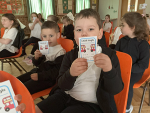 We started the term with the book ‘The Whales on the Bus’, by Nick Sharratt. We started by going on a bus journey (in our school hall), buying bus tickets, strapping ourselves in and singing lots of nursery rhymes! We then experimented with lots of rhyming words to help us to come up with our own verses for the songs.